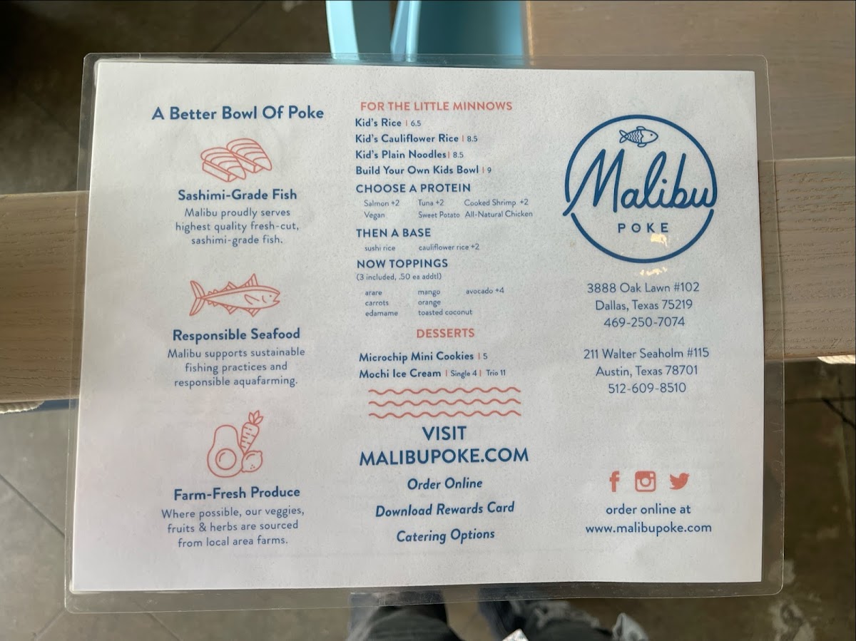 Introducing Malibu Poke, a vibrant poke bar located in the heart of Dallas at 3888 Oak Lawn Ave. This charming eatery offers a quick yet delightful dining experience, perfect for both casual lunches and takeout. The menu showcases a variety of customizable poke bowls, allowing guests to build their own culinary creations or choose from pre-designed options like the spicy chili tuna bowl.